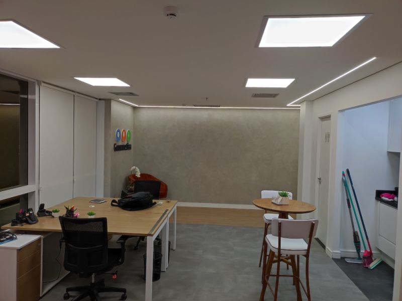 Desde o projeto de arquitetura até a entrega do projeto, fizemos uma pequena reforma para o cliente para poder receber seus clientes em um espaço novo, aconchegante e bem acabado. Fizemos pintura, elétrica, iluminação, rede, instalação de ar condicionado, piso vinílico, cimento queimado e assim entregamos esse espaço maravilhoso.